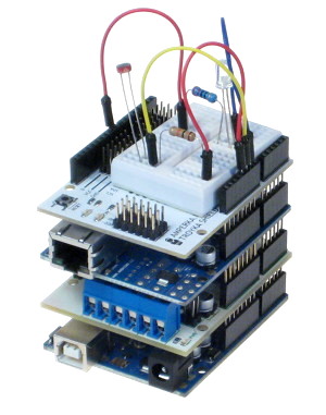 Ещё одной отличительной особенностью Arduino является наличие плат расширения, так называемых shields или просто «шилдов». Это дополнительные платы, которые ставятся подобно слоям бутерброда поверх Arduino, чтобы дать ему новые возможности. Так например, существуют платы расширения для подключения к локальной сети и интернету (Ethernet Shield), для управления мощными моторами (Motor Shield), для получения координат и времени со спутников GPS (модуль GPS) и многие другие.
