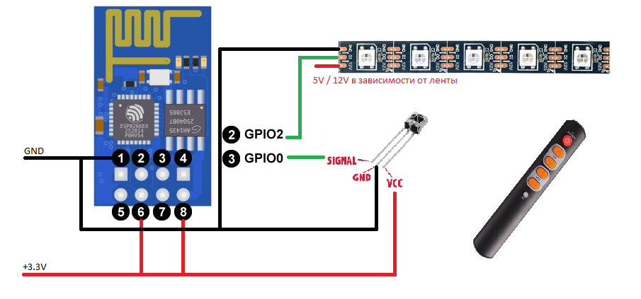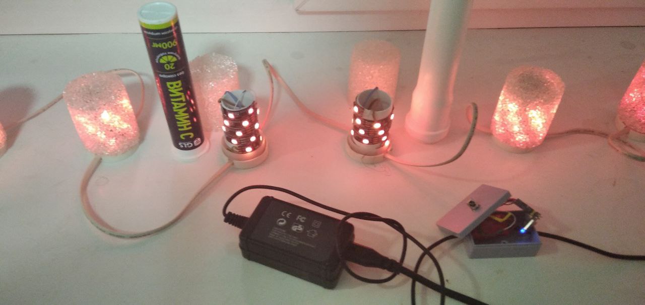 При использовании ws2812 5V и WEMOS все можно смонтировать в 1-й плафон, включая IR приемник (при тестах без проблем принимал сигнал IR пульта)
