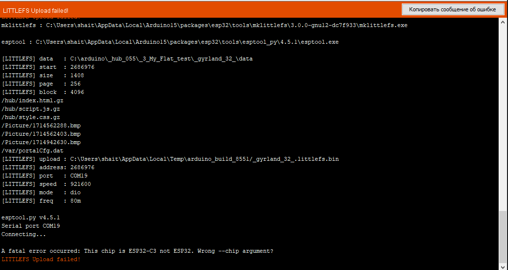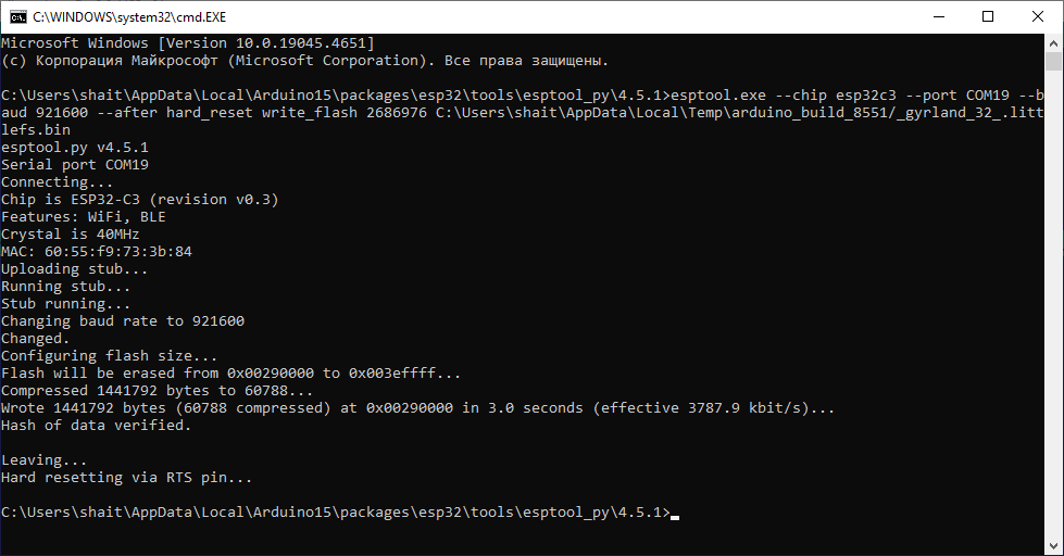 esptool.exe --chip esp32c3 --port COM19 --baud 921600 --after hard_reset write_flash 2686976 C:\Users\shait\AppData\Local\Temp\arduino_build_8551/_gyrland_32_.littlefs.bin