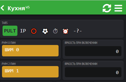 PWM 0 ON - передать 1024 на нулевой мосфет