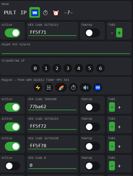 RX433_PIN - номер pin, куда подключен приемник 433. для отключения модуля, закоментировать.