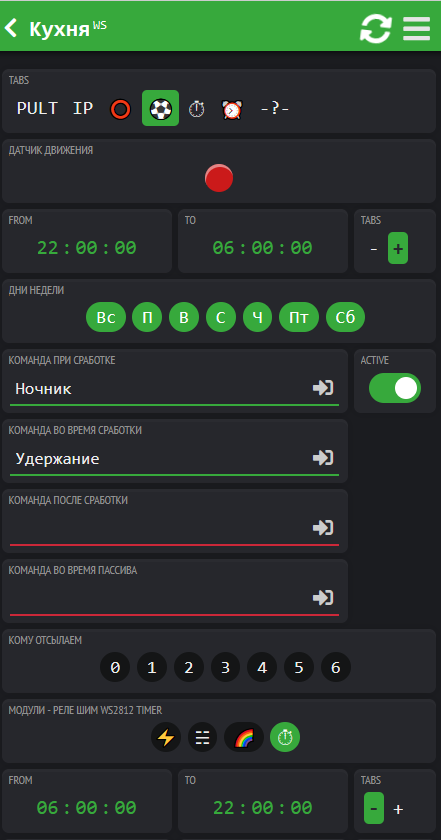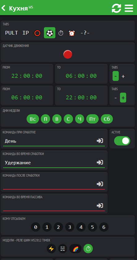 SR501_PIN - номер pin, куда подключен датчик. для отключения модуля, закоментировать.