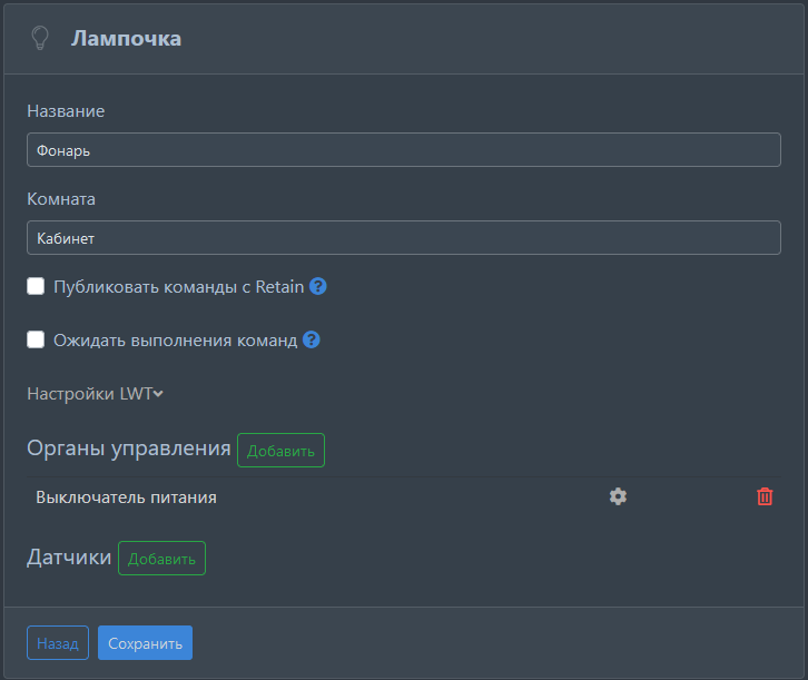 #define HUB_NAME "Фонарь" // Имя для GyverHub и и ответа на DISCOVER