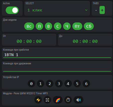В акции события вписываем команду на одиночное, двойное или длительное нажатие кнопки и номер кнопки.Например: