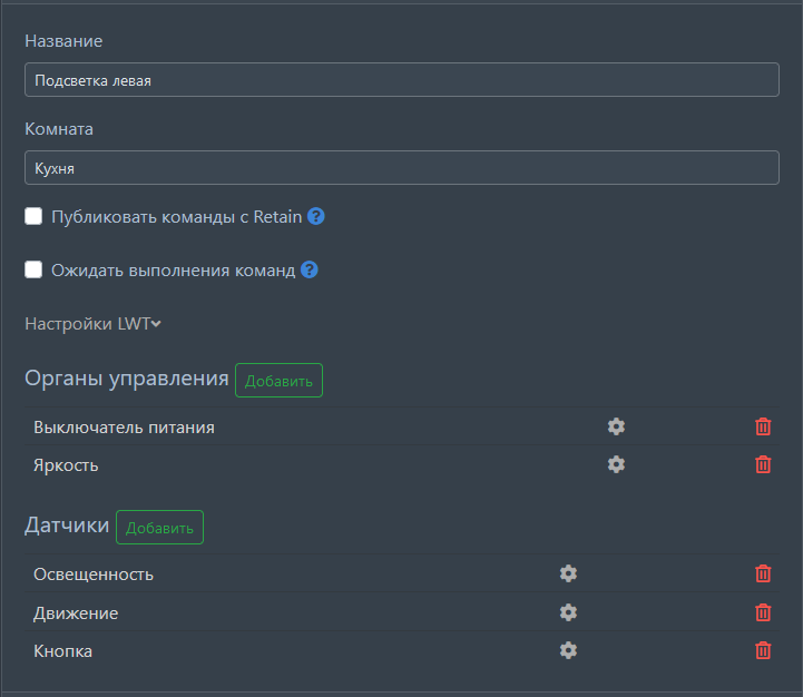 На устройстве добавляем кнопку на устройстве в ДатчикахТак как wqtt не позволяет сделать одинаковые органы управления и датчики на одном устройстве, то, если надо сделать несколько кнопок придется делать несколько устройств.