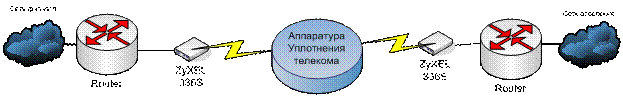 телекома, а модем, который может работать в режиме выделенной линии (ZyXEL 336E, ZyXEL 336S). Скорость